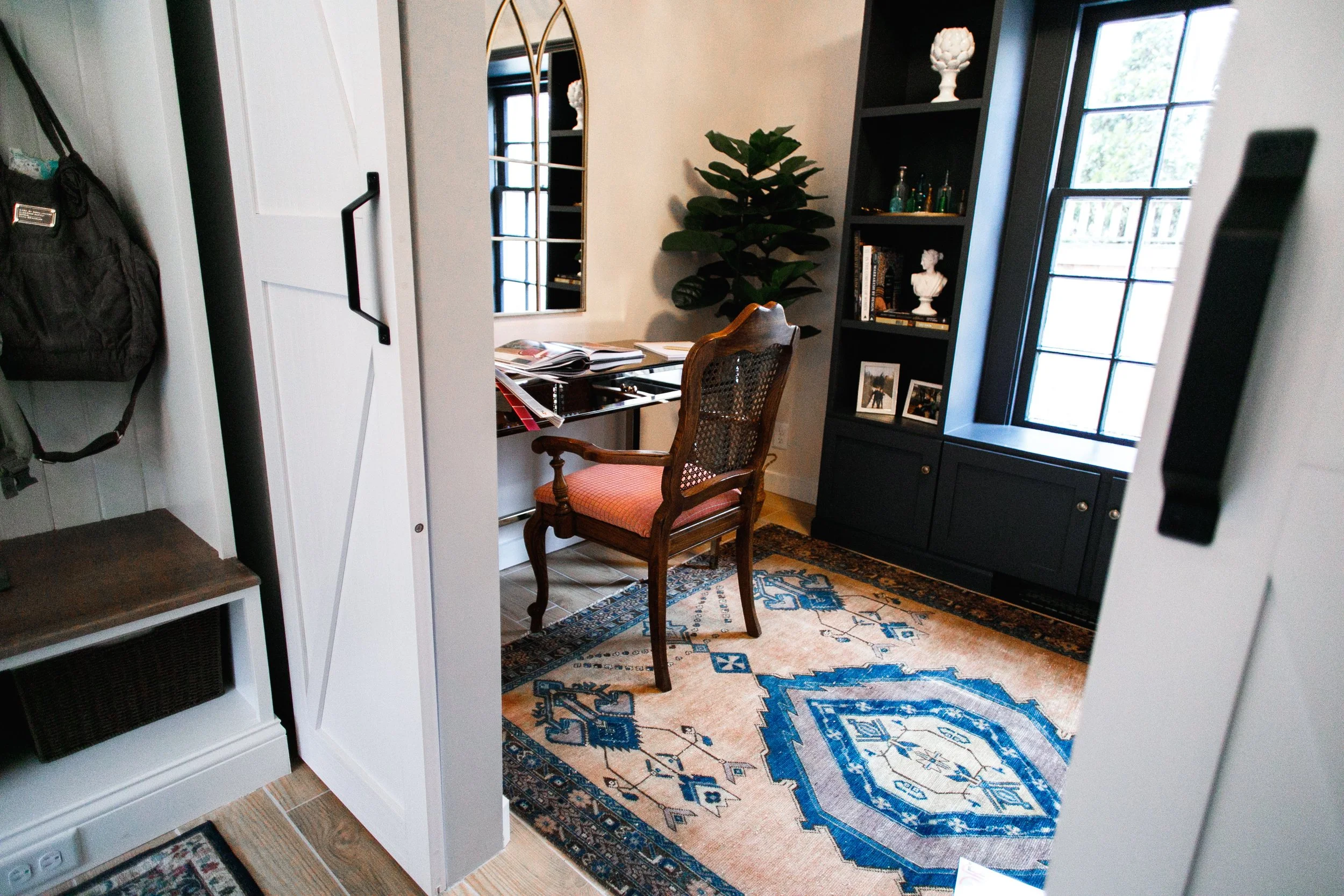 Comfort- I am a huge fan of vintage rugs. I always need a way to listen to music when I work, and I often light candles. The kind of office chair you pick matters too; upholstered armchair or desk chair?