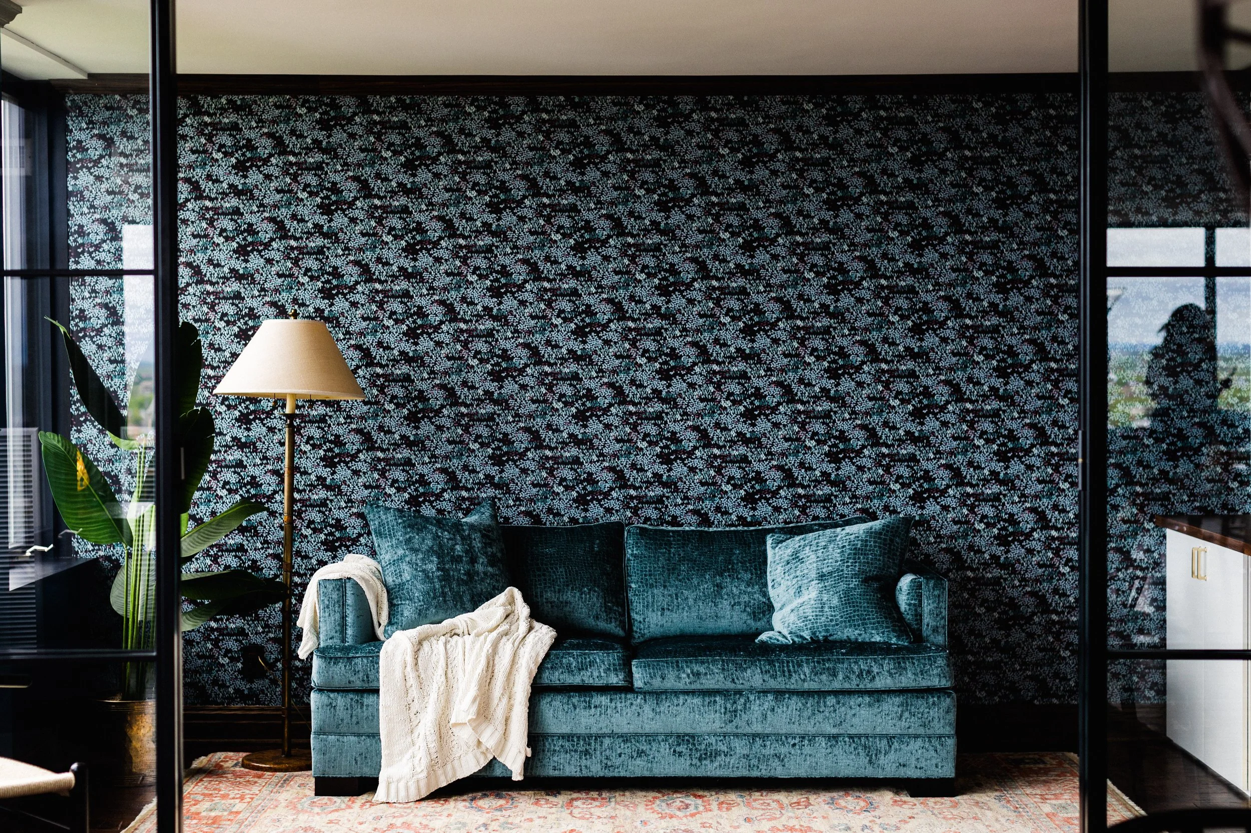 I have mixed feelings about this. It’s excruciating to see a historic home’s molding and woodwork get painted over. Nevertheless, there are circumstances where this approach can enhance a design while maintaining the integrity of the space. Take staircase arm rails and wainscoting: painting them the same color as the walls produces a seamless, polished look. Likewise, painting the crown molding in a room the same color as the walls can seem to lift the ceilings, creating more space. In addition, painting the crown molding a complementary color to wallpaper generates interest, as shown below. I am a big fan of painting doors and door trim as well. In newly built homes, it makes sense to paint baseboards and window trim; they usually have a white factory finish anyway.